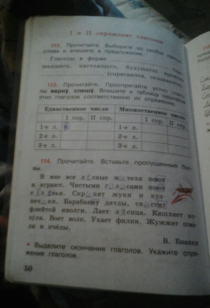 Надо слова написать в 1 спряжение и в 1,2,3 лице. А потом также со 2 спряжением