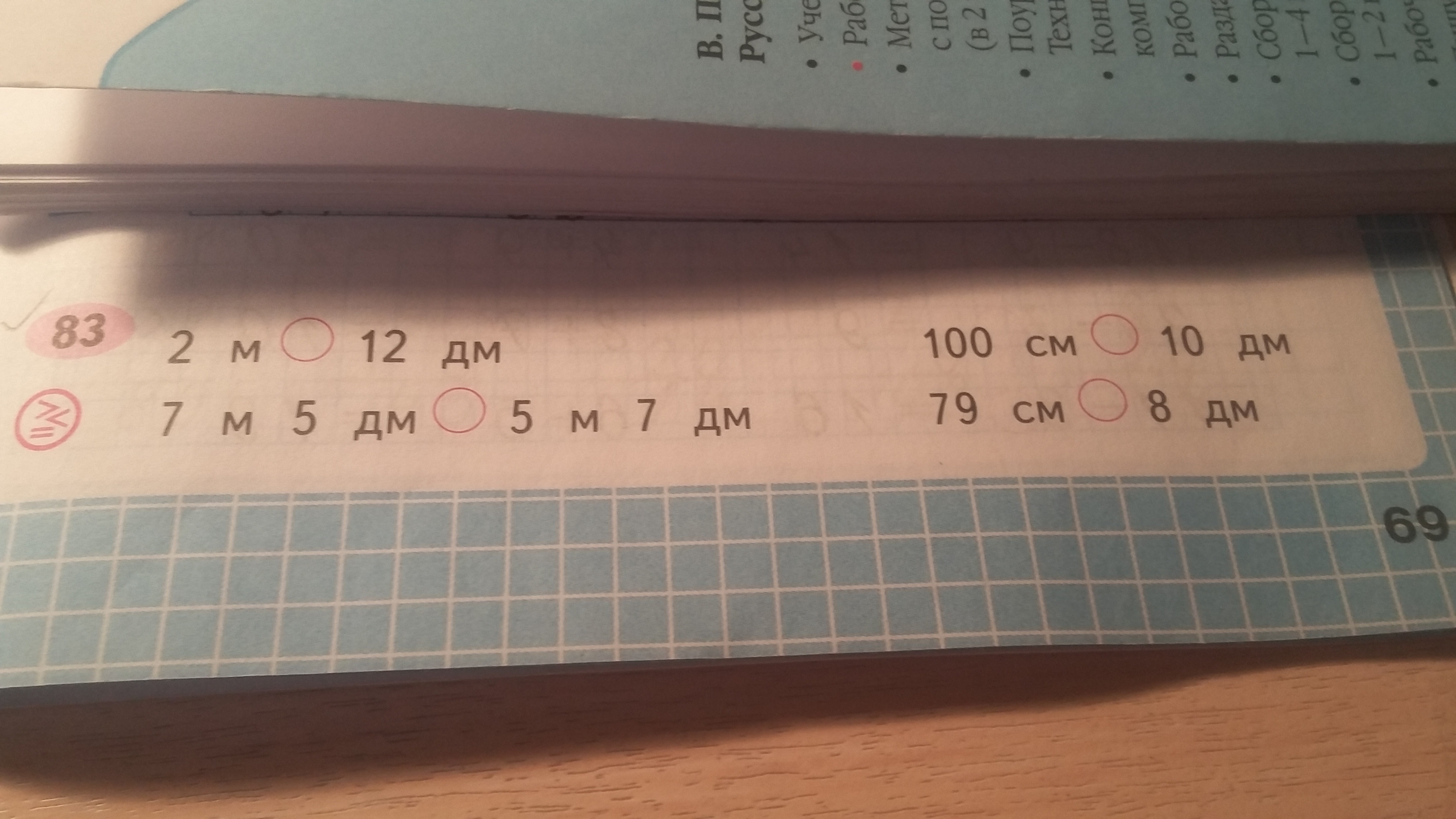 7 м 5 дм > 5 м 7 дм. 79 см < 8 дм