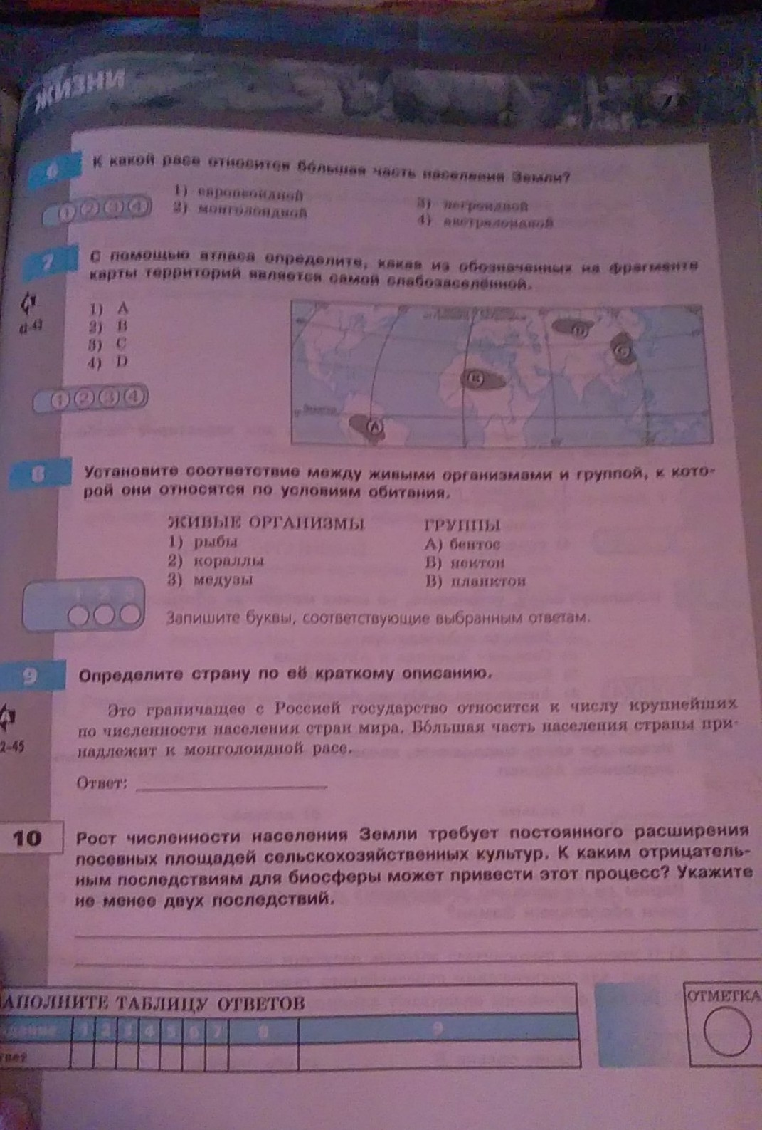 7) Сахара (это в Африке). Центральные части не заселены