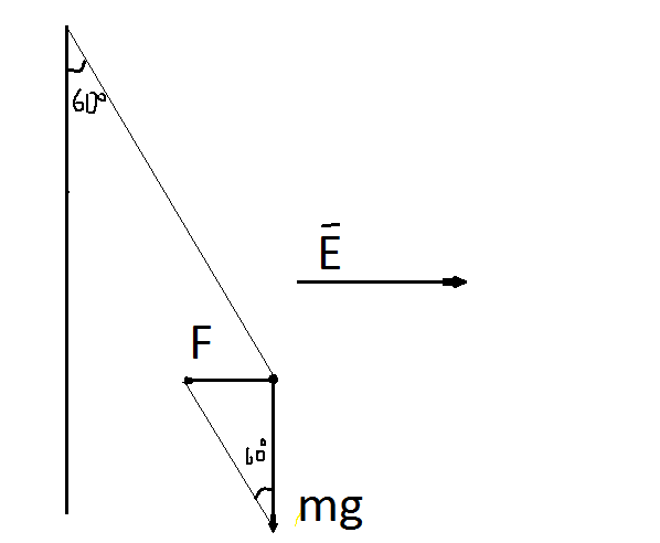 F = mg* tng< 60 градусов ( tng < 60 gr = F/mg)