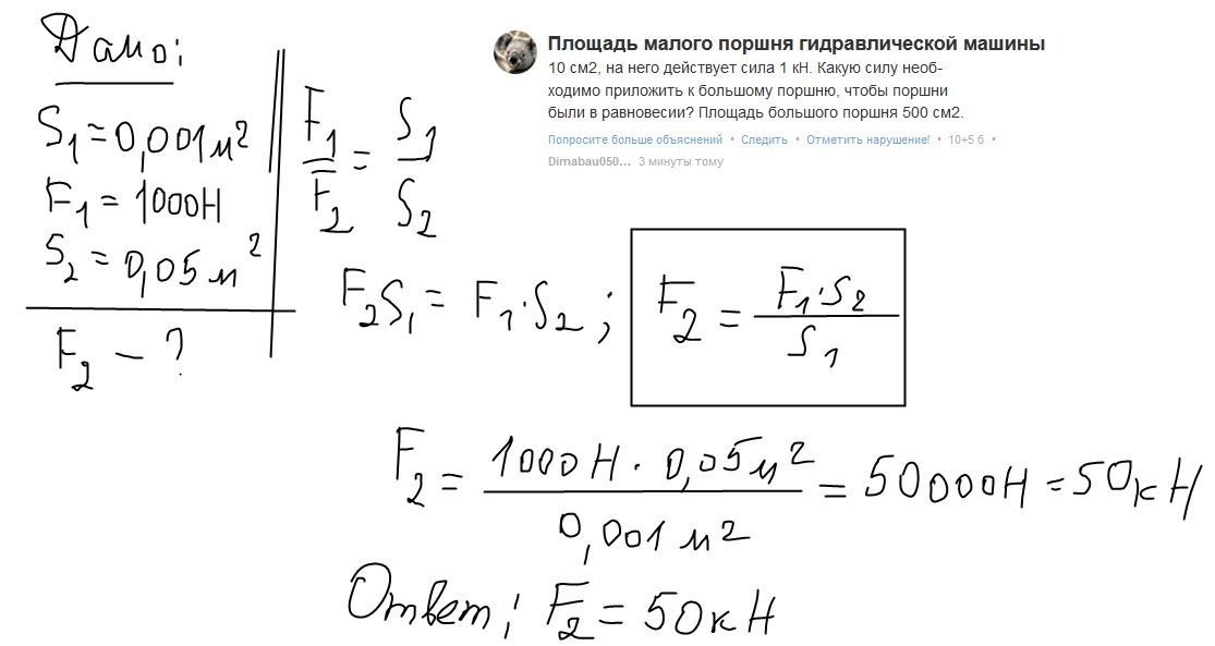Площадь малого поршня гидравлического пресса меньше площади большого в 80 раз. Какая сила действует на малый поршень, если к большому приложена сила 720 кН?