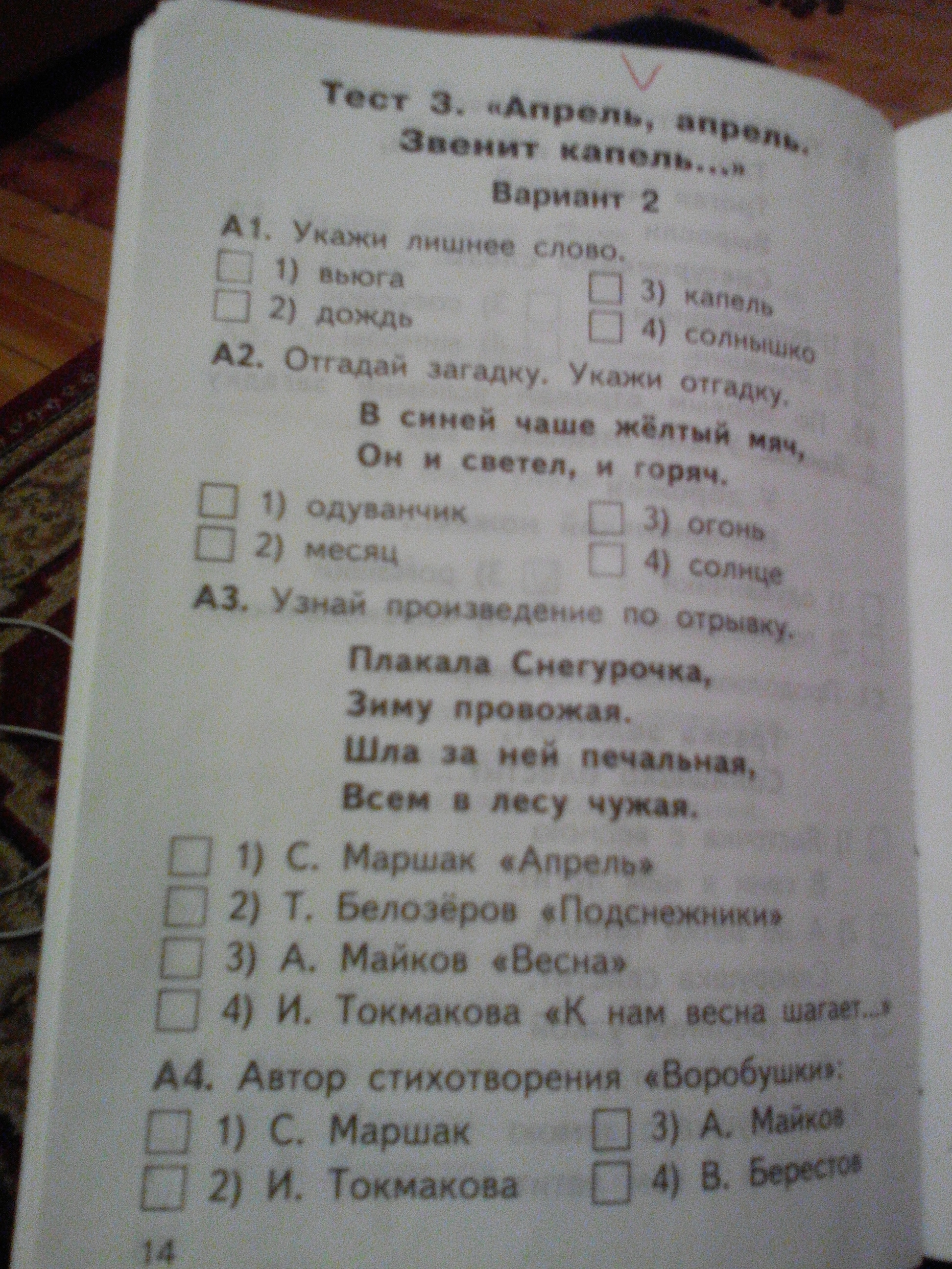 1.лишнее слово солнышко. 2.солнце. 3.И. Токмакова.К нам весна шагает. 4 В. Берестов.