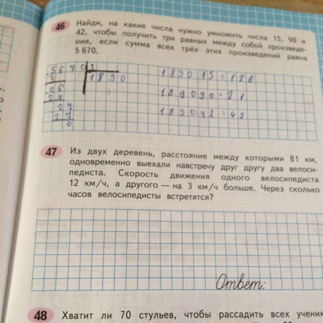 47. 1)12+3=15 (км./ч.)-скорость 2 велосипедиста