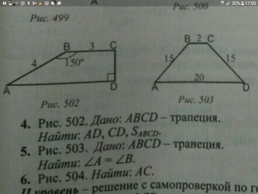 4) ∠А+∠В=180 ⇒ ∠А=180°-∠В=180°-150°=30°
