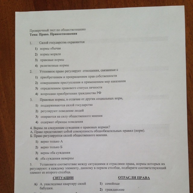 4-3) Право совокупность правил=верно;Право регулируется силой общественного мнения=верно.