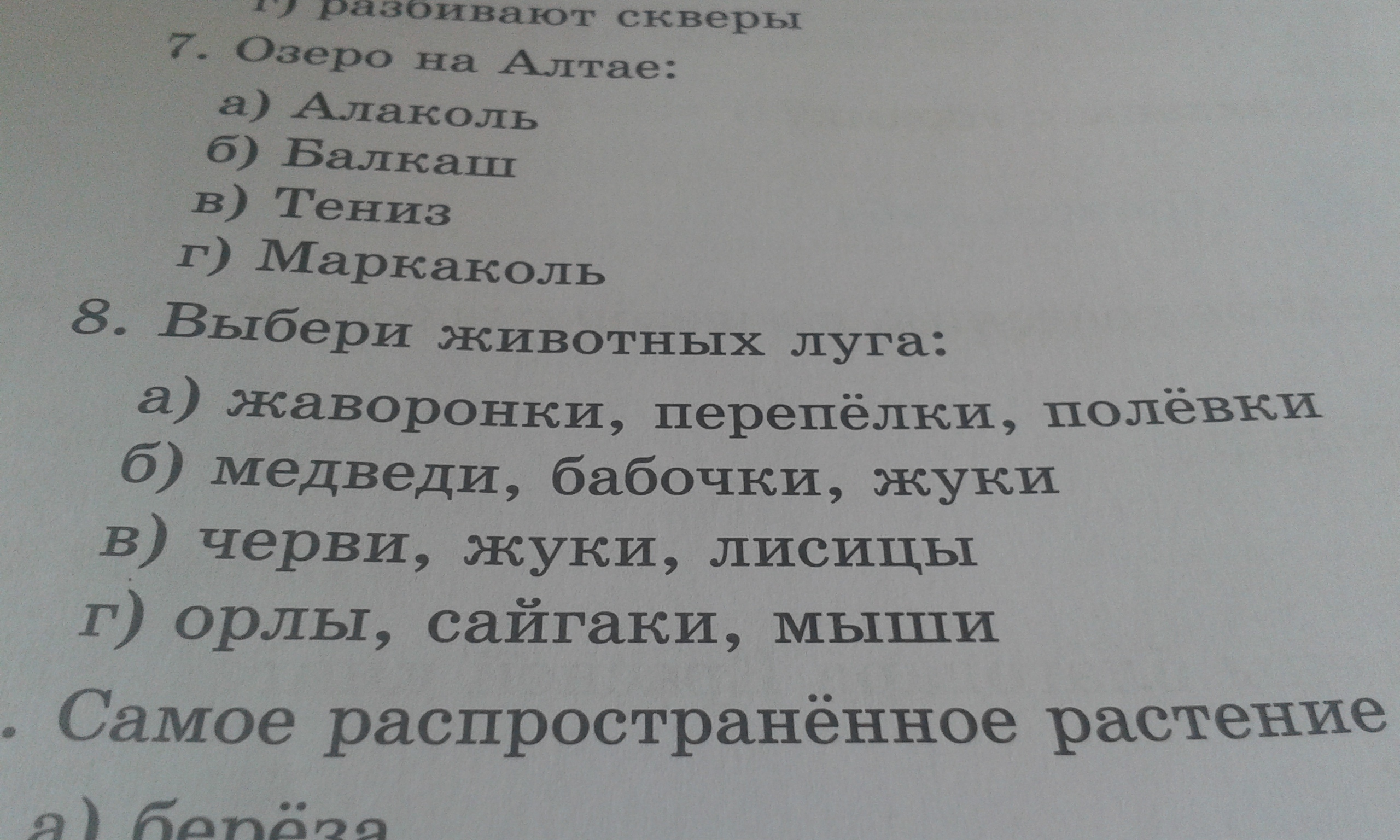 в 7 вопросе ответ г) Маркаколь-крупнейшее озеро горного Алтая