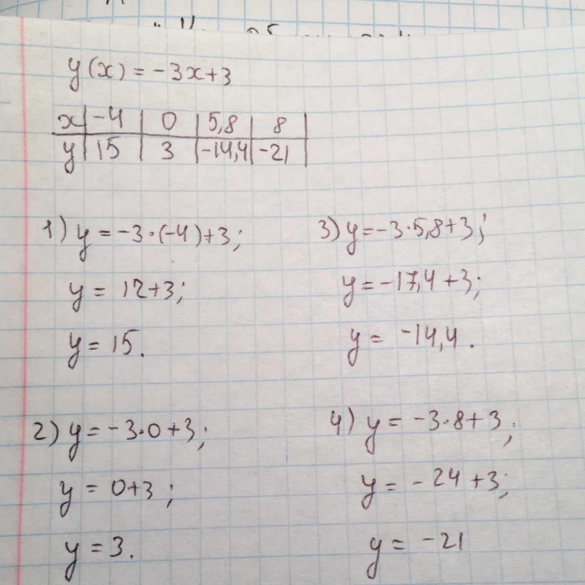 Функция задана формулой y(x)=−3x+3 . Заполни таблицу.