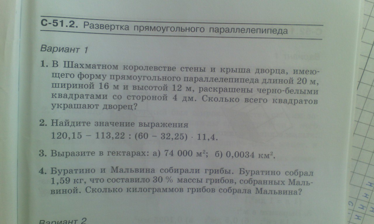 4(м^2)=118400(дм^2)-площадь стен и потолка.
