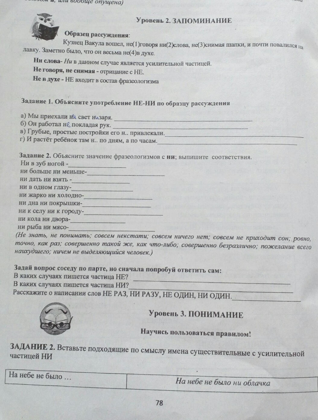 1.Ни свет,ни заря- ни является усилительной частицей.
