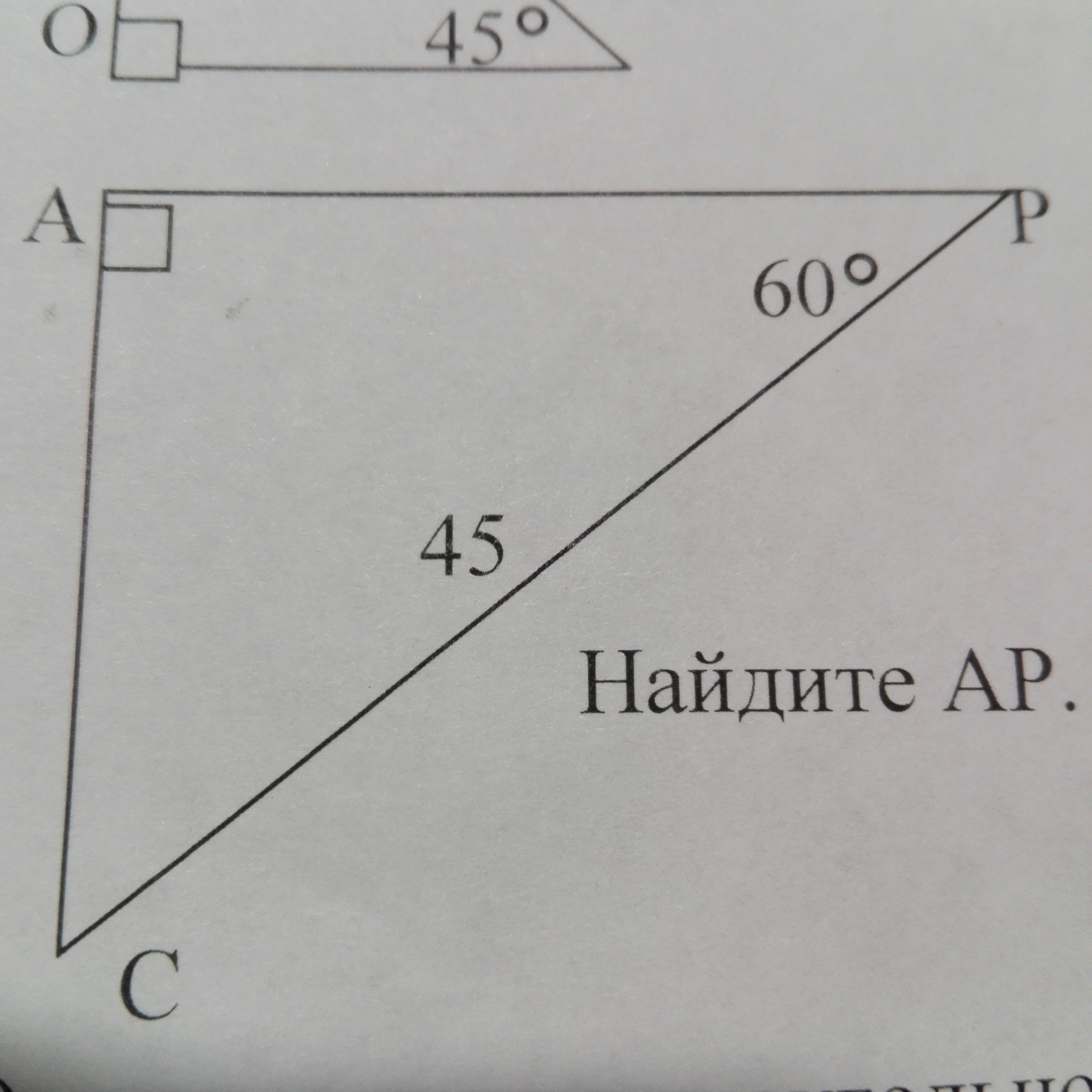 угол С=30 гр. Катет АР лежит против угла в 30 гр. значит равен половине гипотенузы, т.е. 45:2=22,5