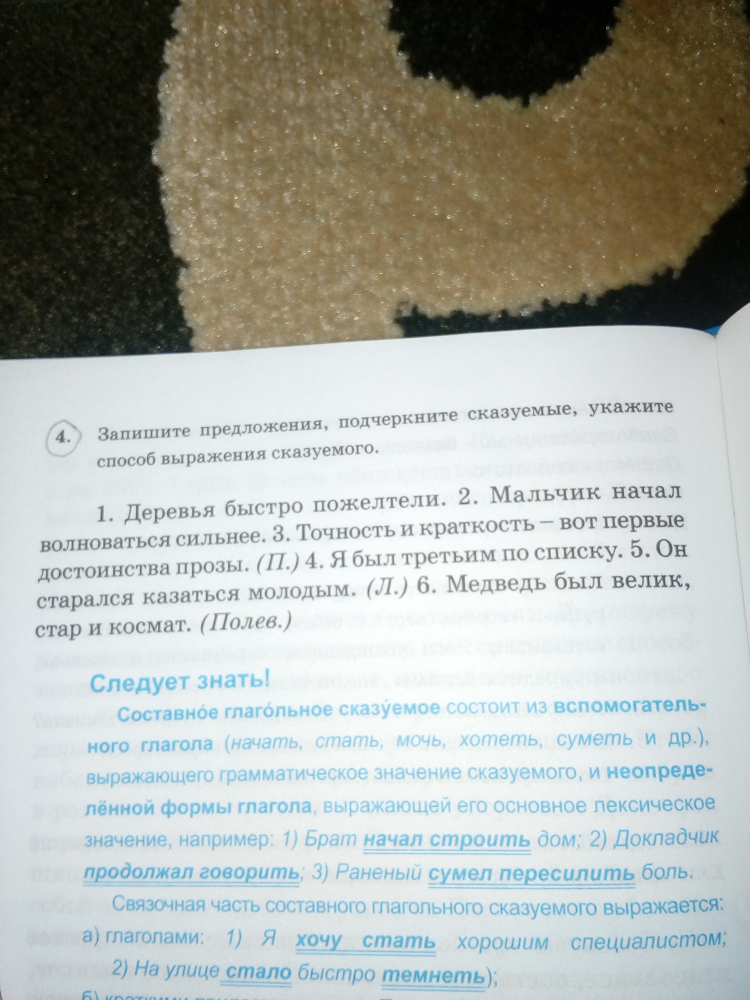 Сказуемое пожелтели начал волноваться был старался казаться был