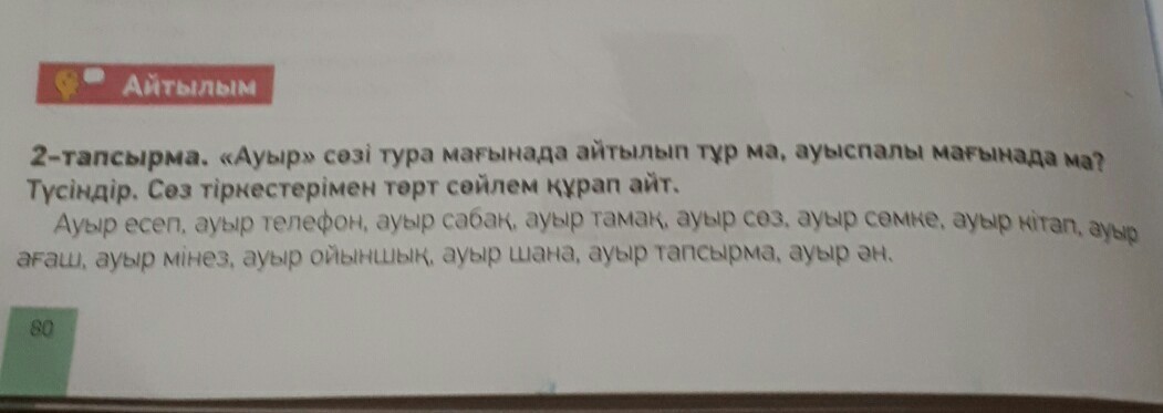 Биз бугин мектепте ауыр есеп шыгардык, Кыста адамдар ауыр шанамен далага шыгады, Бизге уйге ауыр сабак берди,