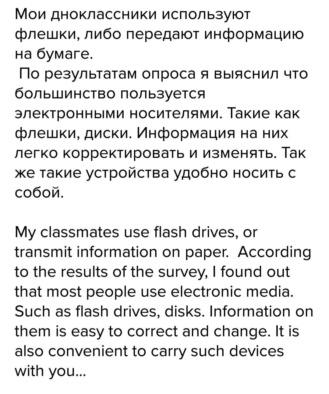 Проект: Какие типы носителей используются вашими одноклассниками для выполнения домашней работы? Провести опрос. Сообщите о своих результатах.