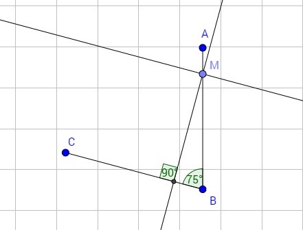 Начертите угол АВС, равный 75°. На стороне ВА отметьте точку М и проведите через неё две прямые, одна из которых параллельна, а другая перпендикулярна стороне ВС.