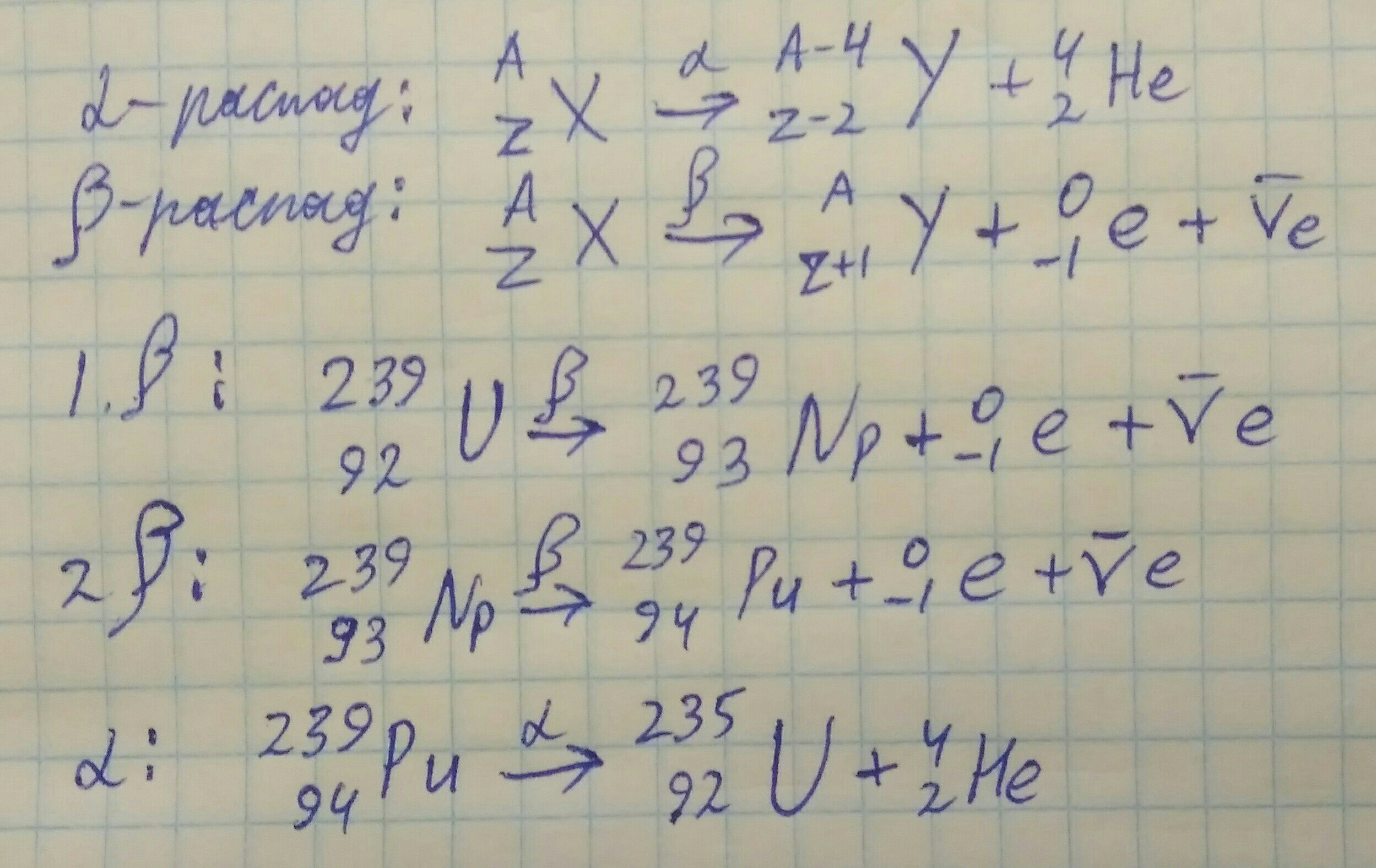 Какой изотоп образуется из 239 92U после двух β-распадов и одного α-распада?(Рымкевич 1196)