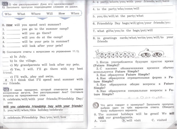 О чём расспрашивают Дэна его одноклассники? Заполните пропуски подходящими словами. Соотнеси ответы с вопросами из упражнения 11.1