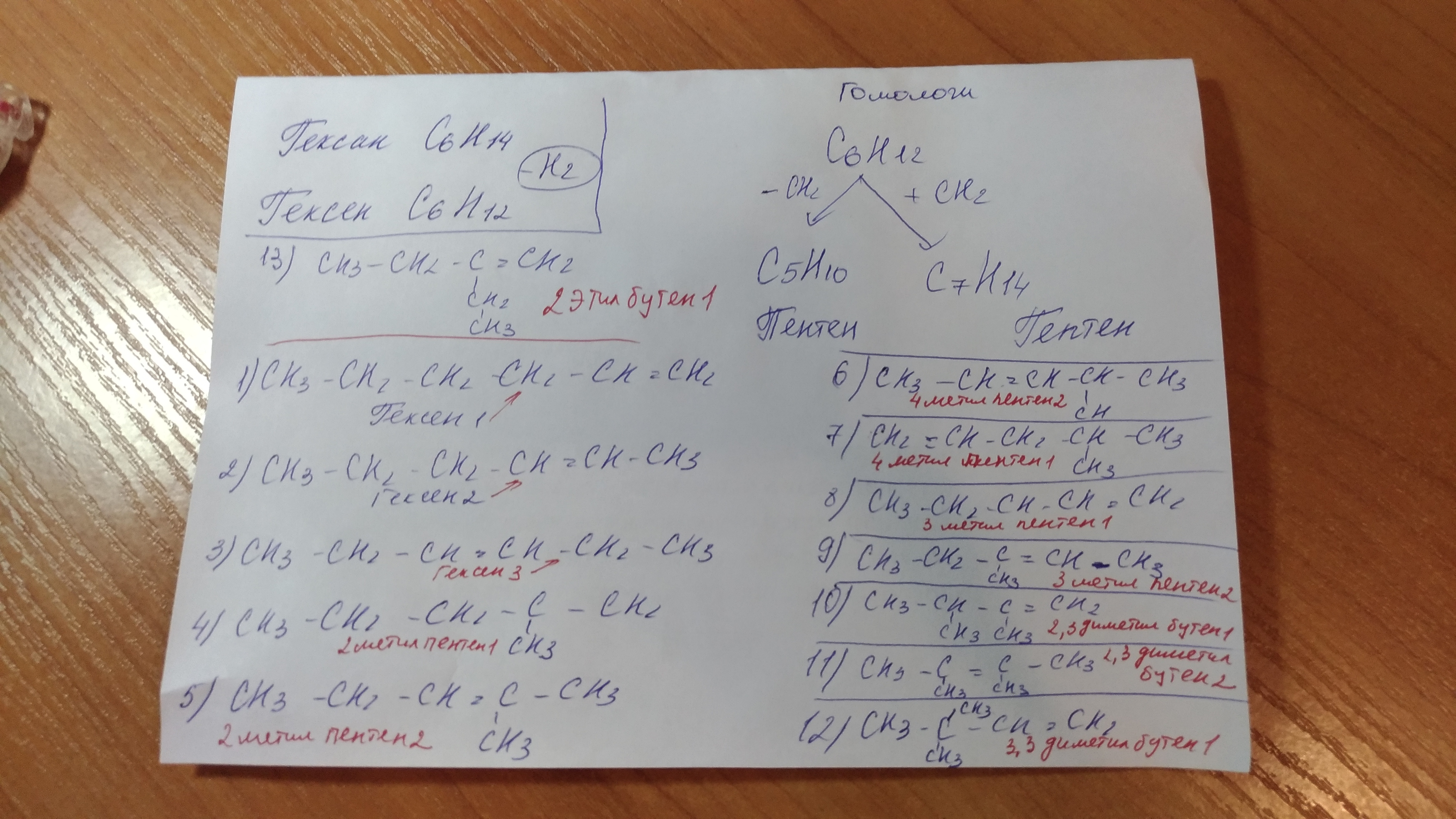 составить структурную формулу для гексен1, написать формулу двух ближайших гомологов и возможные виды изомеров. назвать вещества