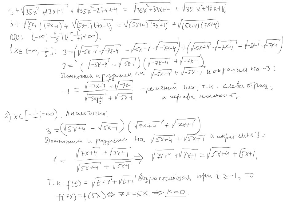 Единственный кандидат на то, чтобы быть корнем, это x = 0. Подстановка x = 0 в уравнение приводит к верному равенству, значит, x = 0 - корень.