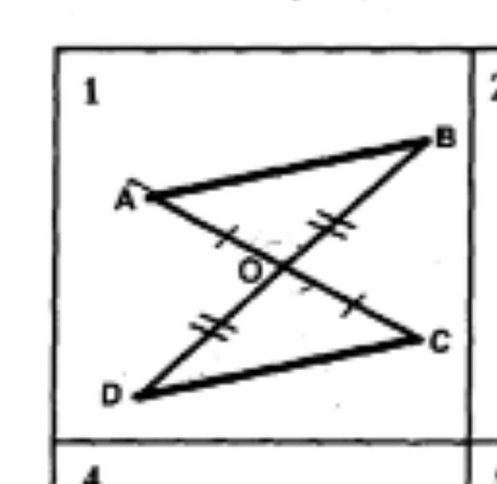 Углы DOC и ВОА вертикальные => уг. DOC=BOA => тругольник АОВ равен СОВ по двум сторонам и углу между ними.