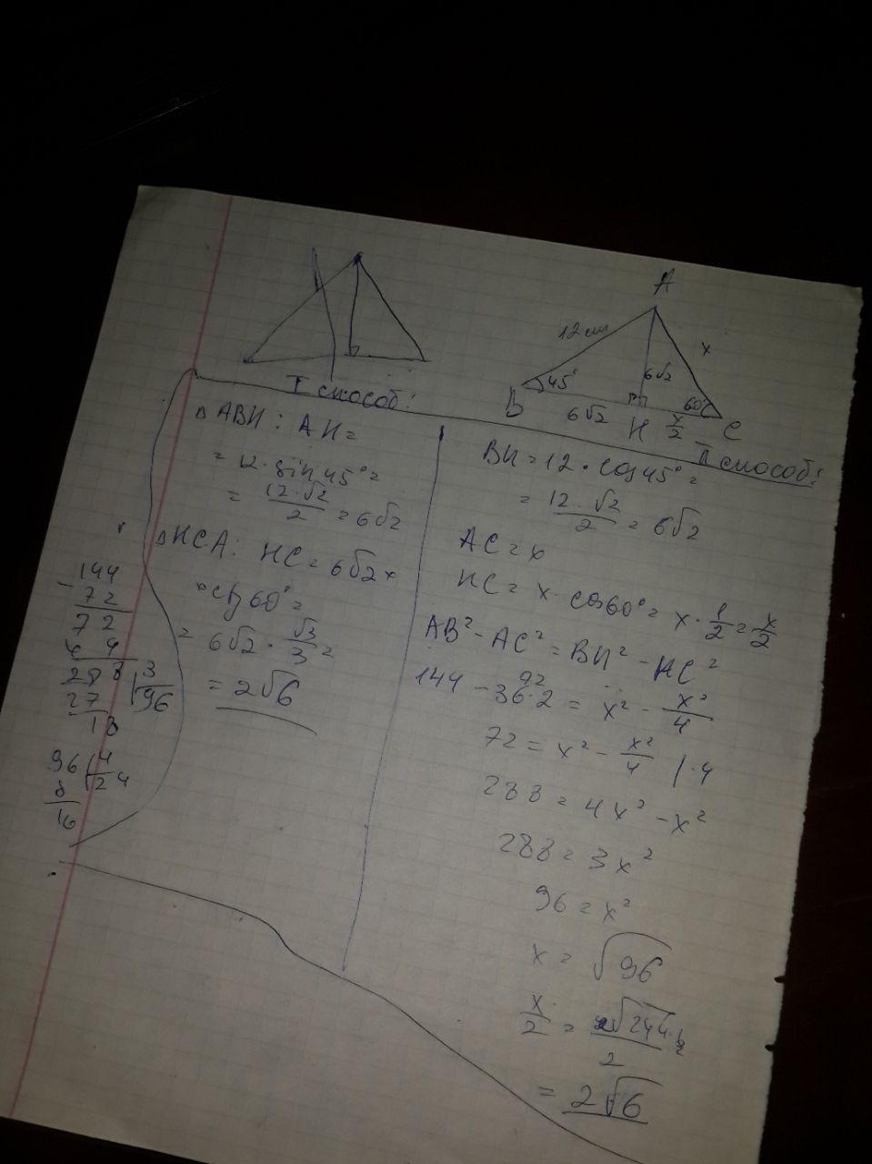 Н = L1·sin α = 12 · 0.5√2 = 6√2 (cм)
