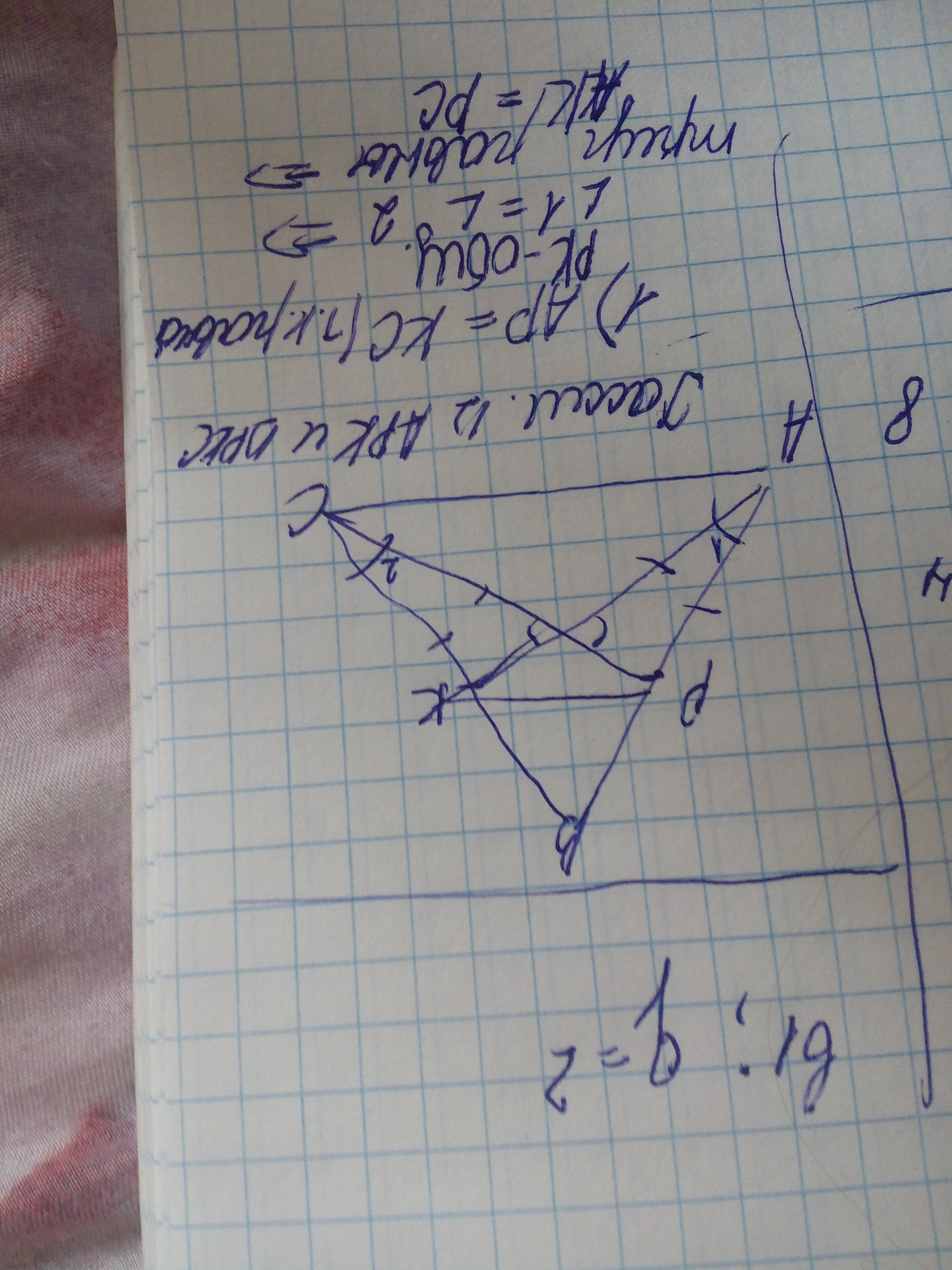 угол РАК=РСК=>треугольники равны=>АК=РС