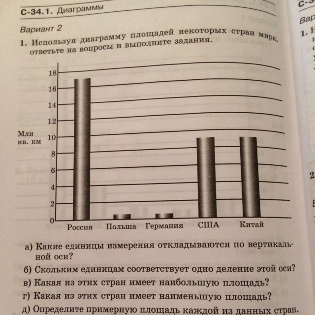 Используя диаграмму площадей некоторых стран мира,ответьте на вопросы и выполните задания
