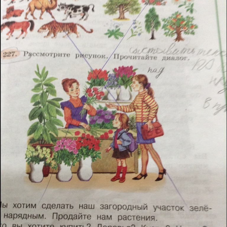Сегодня у бабушки День Рождения и мы с мамой пришли в цветочный магазин за букетом. Продавец предлагала нам разные цветы. Мне понравились алые розы. Маме понравились белые розы . Мы решили купить красные розы. Продавец упаковал их. Бабушка будет рада такому подарку .