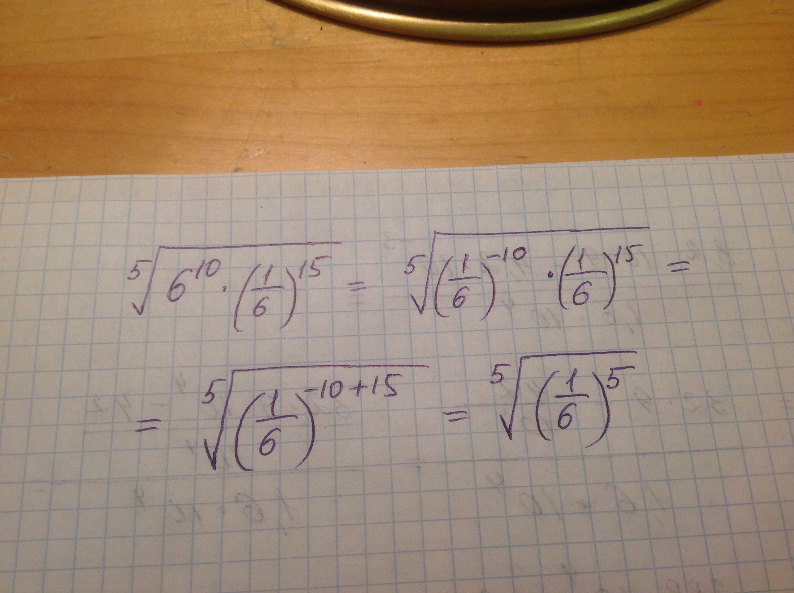 (1/6)^15=(6^-1)^15=6^-15. 6^10*6^-15=6^-5=(6^-1)^5=(1/6)^5. как-то так. если непонятно пишите.