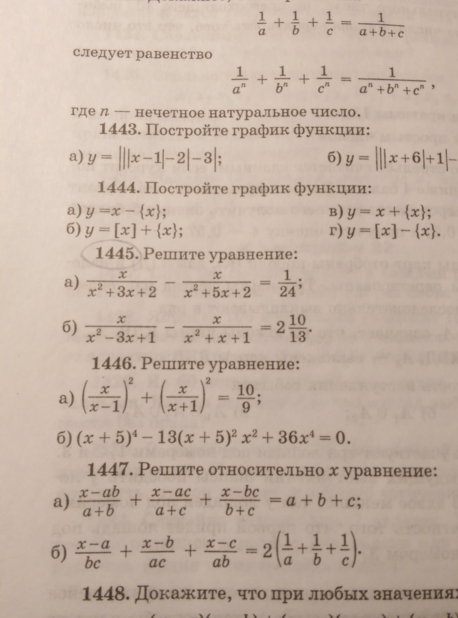 Помогите решить уравнение, номер 1445 в прикрепе.. прошу пожалуйстас: Алгебра 9 класс с углубленкой.. не могу вспомнить, что делать со знаменателем..