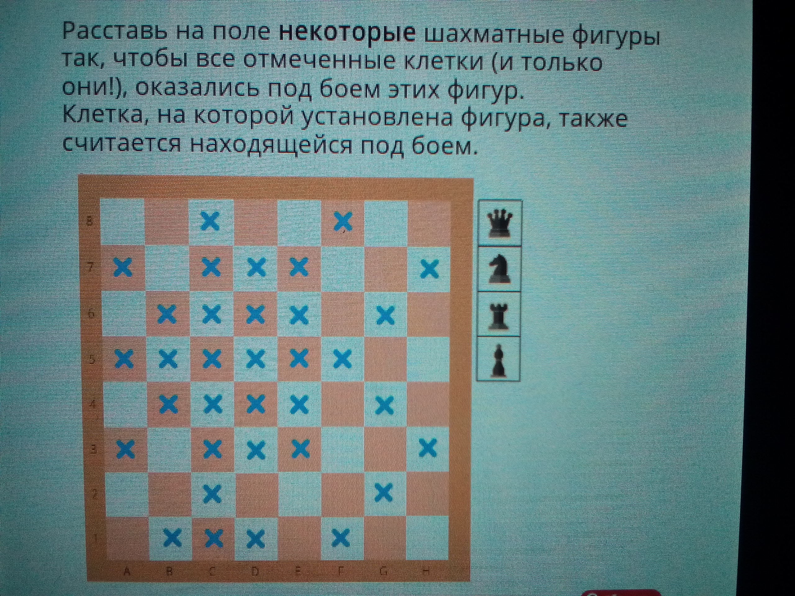 Ферзь 6В ладья 8D конь 5 E слон 3Н