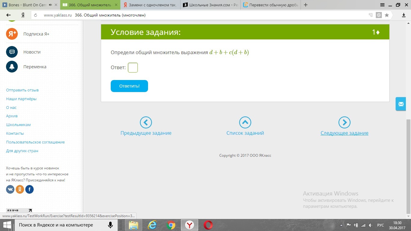 d+b+c(d+b)=(d+b)(1+c) общий множитель d+b