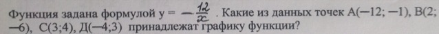 если х=-12 то когда подставим это значения в функцию -12/x должно быть y=-1