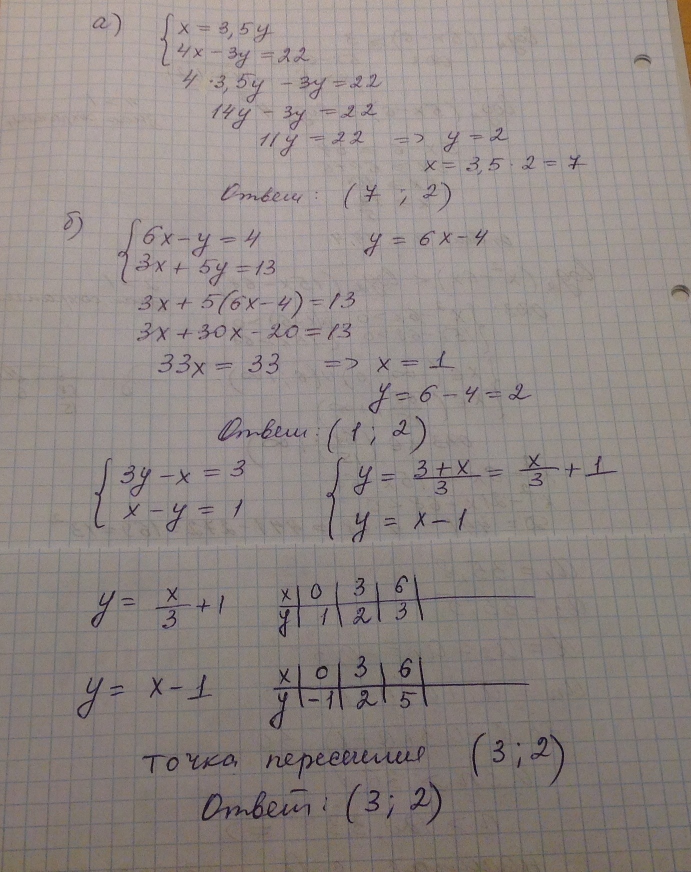 а)фигурная скобка х=3,5у и 4х-3у=22