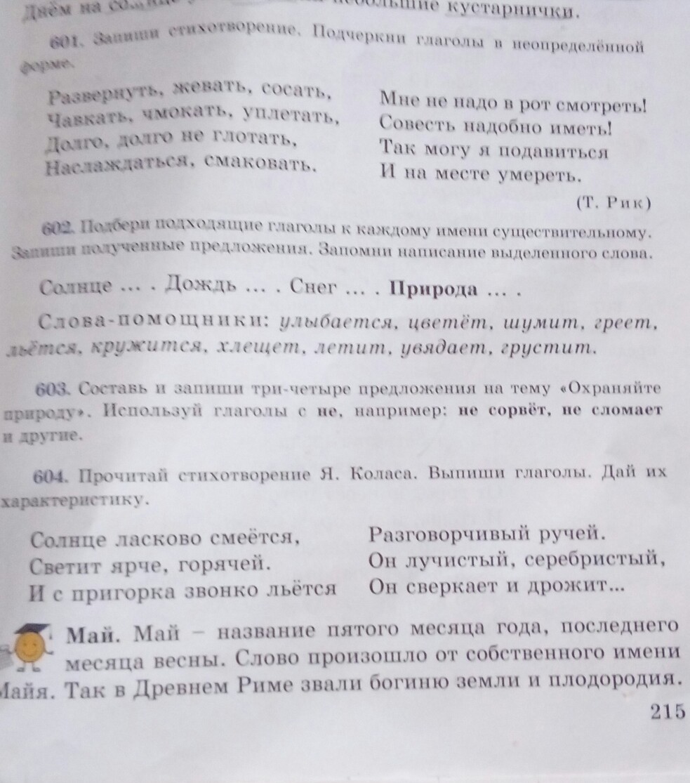 602. Солнце греет. Дождь льётся. Снег кружится. Природа улыбается.