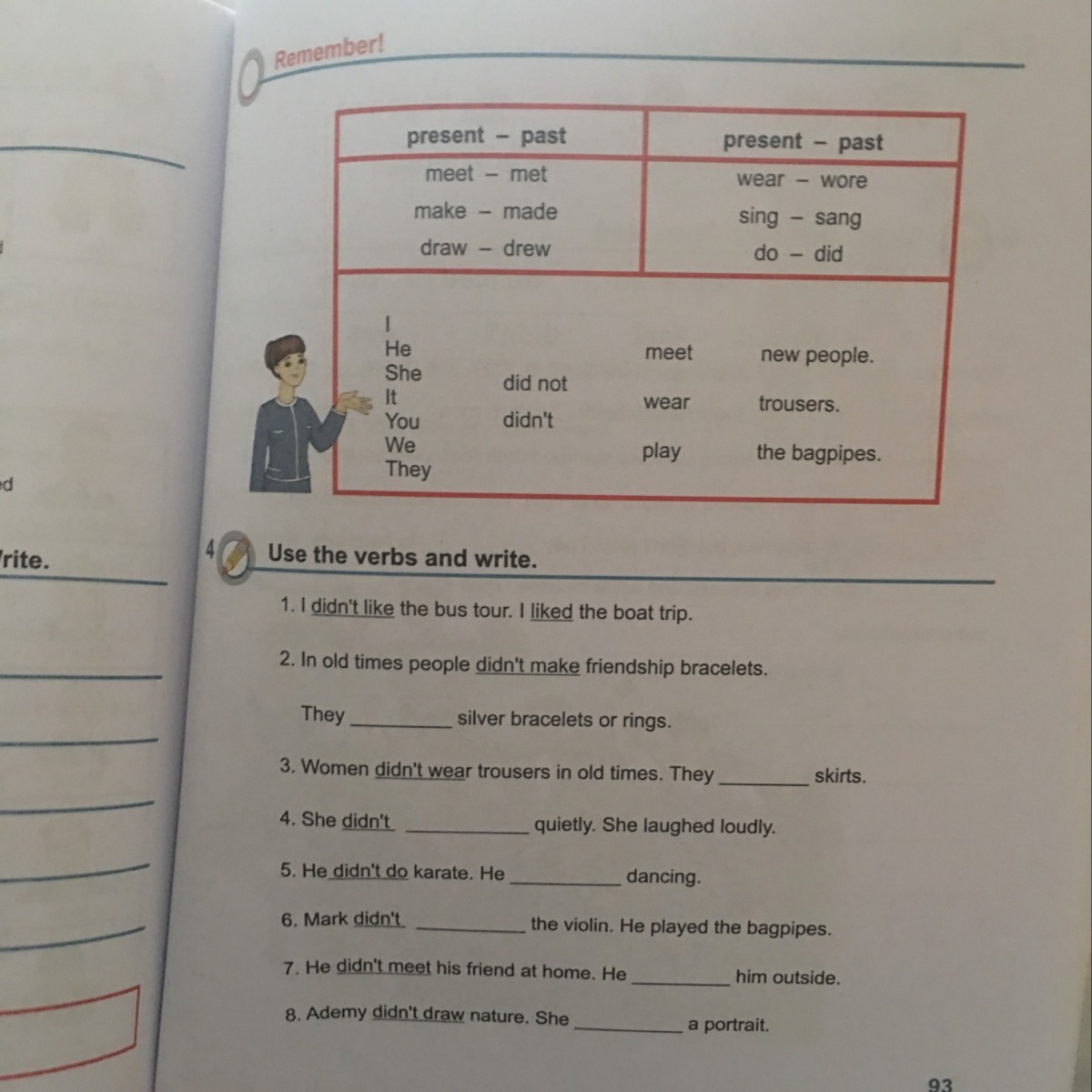 2) made 3) wore 4)laugh 5)did 6) play 7) met 8) drew