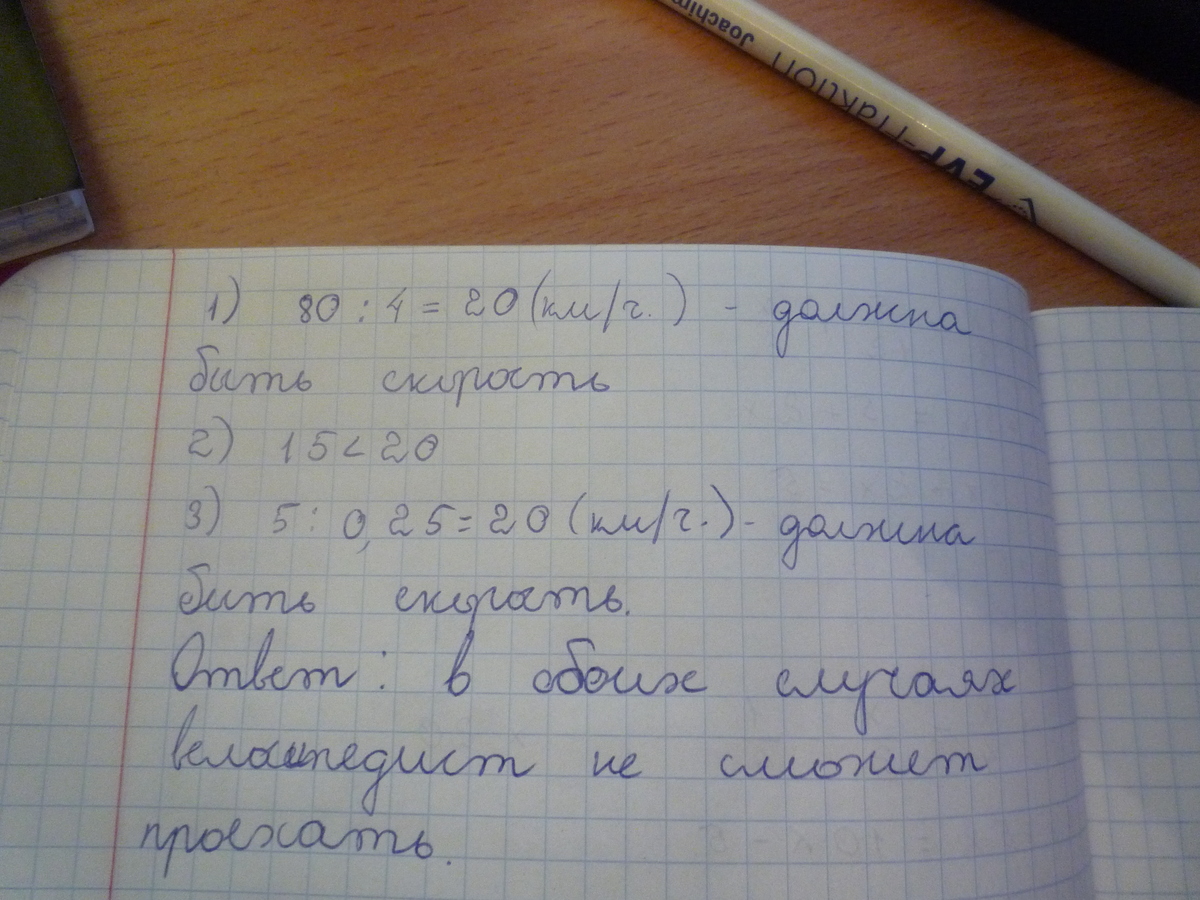 Велосипедист едет по шоссе со скоростью 15 км/ч. Сможет ли он за 4 часа проехать по просёлку 80 км?