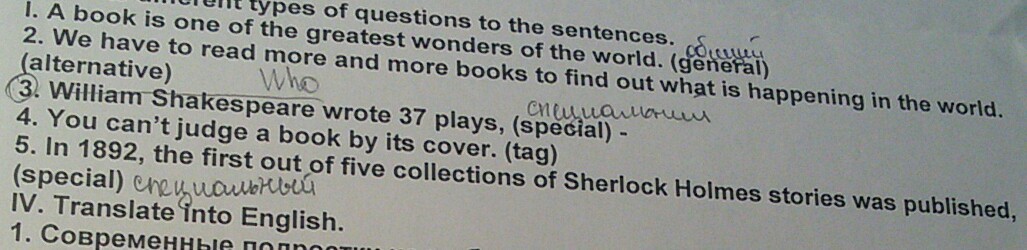 How many plays did Shakespeare write?(специальный)или Who wrote 37 plays?(вопрос к подлежащему)