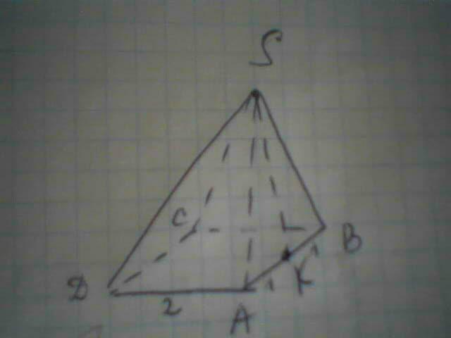 в правильной четырехугольной пирамиде SABCD с вершиной S медиана SK боковой грани S AB равна 5. найдите площадь полной поверхности этой пирамиды,если сторона основания равна 2