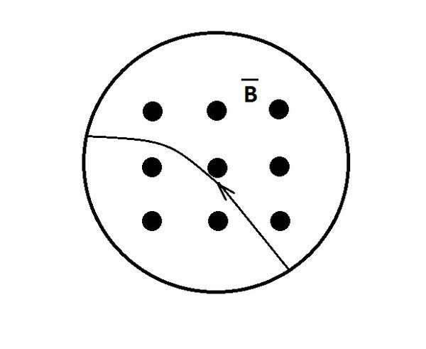 на рисунке изображена фотография трека частицы в камере Вильсона,находящейся в магнитное поле. Вектор В направлен к нам. Опредилите знак заряда частицы