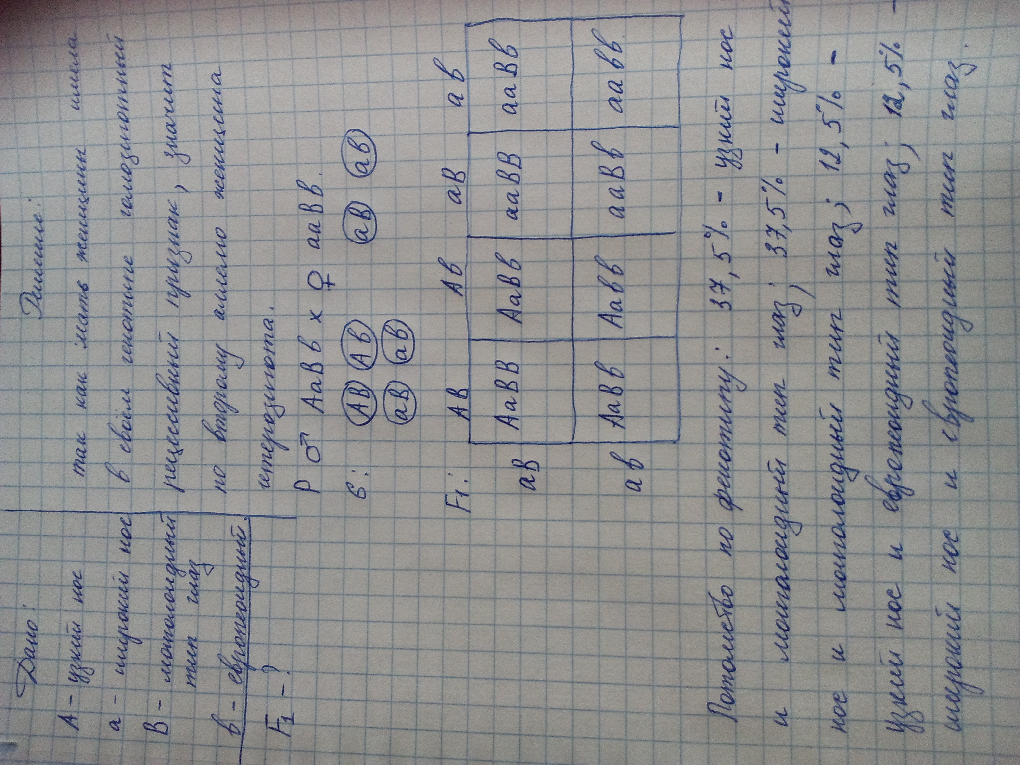 У человека узкий нос и монголоидный тип глаз – доминантные аутосомные признаки. Женщина имеет широкий нос и монголоидный тип глаз, а ее мать была с европеоидным типом глаз. Мужчина имеет узкий нос и монголоидный тип глаз и является гетерозиготным по обоим признакам. Какое потомство можно ожидать от их брака?