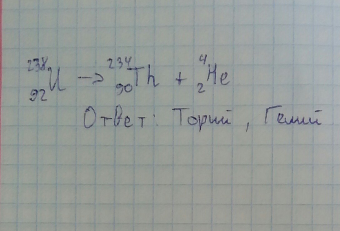 После альфа распада, образуются элементы Торий, Гелий.