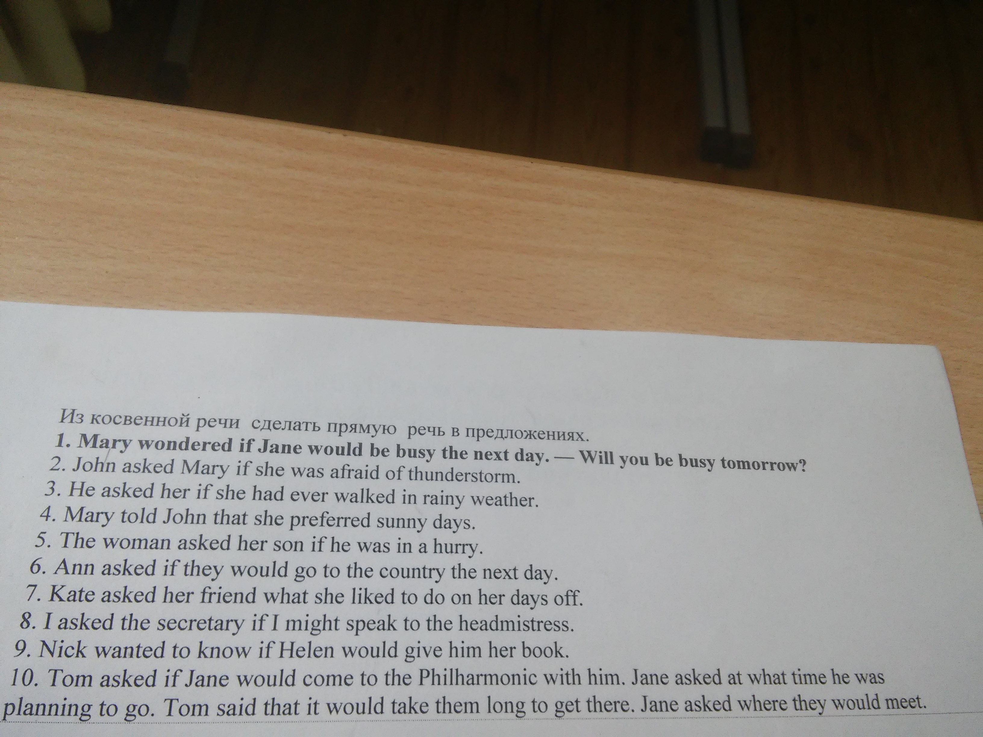 1. Mary wondered, "Will you be busy tomorrow?"