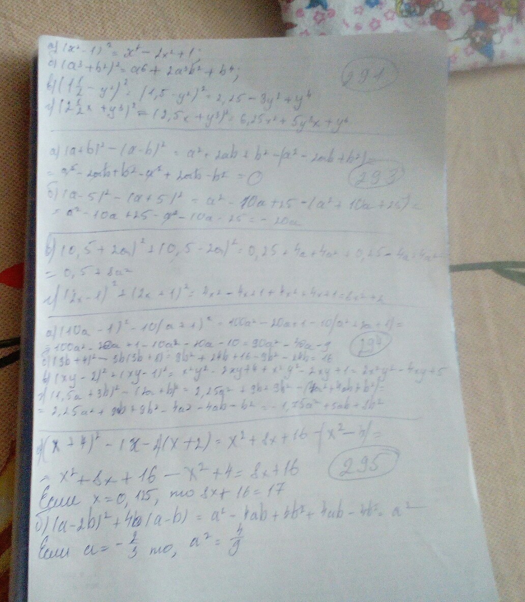 А)(10а+3b)^2=100a^2+60ab+9b^2; Б)(2b-9)= 4b^2-36b+81; В)(0,5х+1)^2=0,25х^2+2х+1; Г)(0,1-2с)^2= 0,01-0,4с+2с^2 номер 290