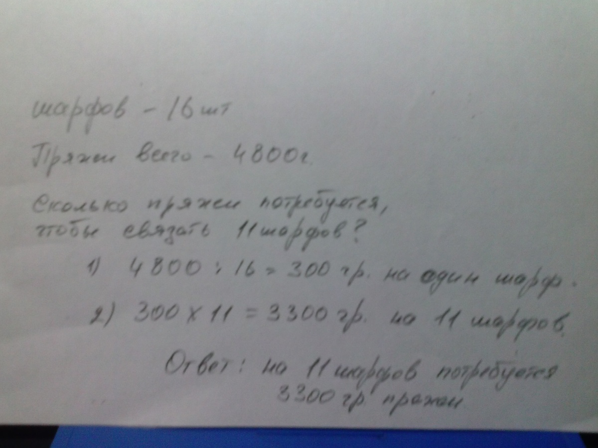из 4800 г пряжи связали 16 одинаковых шарфов сколько пряжи потребовалось на одиннадцать таких шарфов