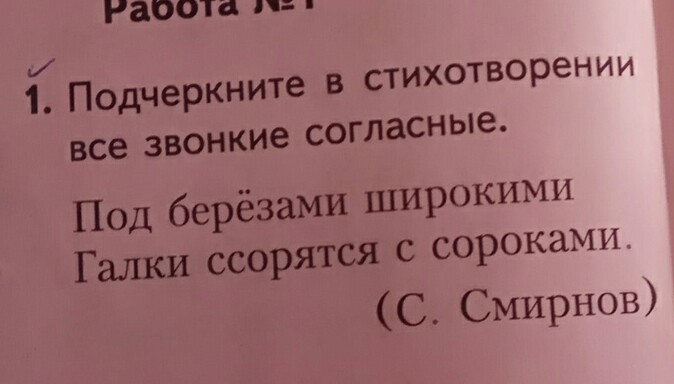 Подчеркните в стихотворении все звонкие согласные под березами широкими голтис ссориться с сороками