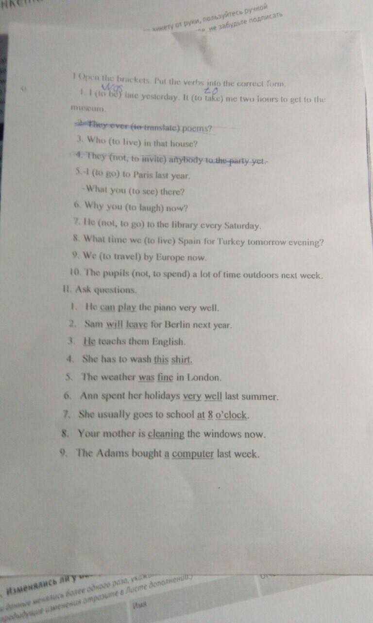 3) он учит их английскому языку