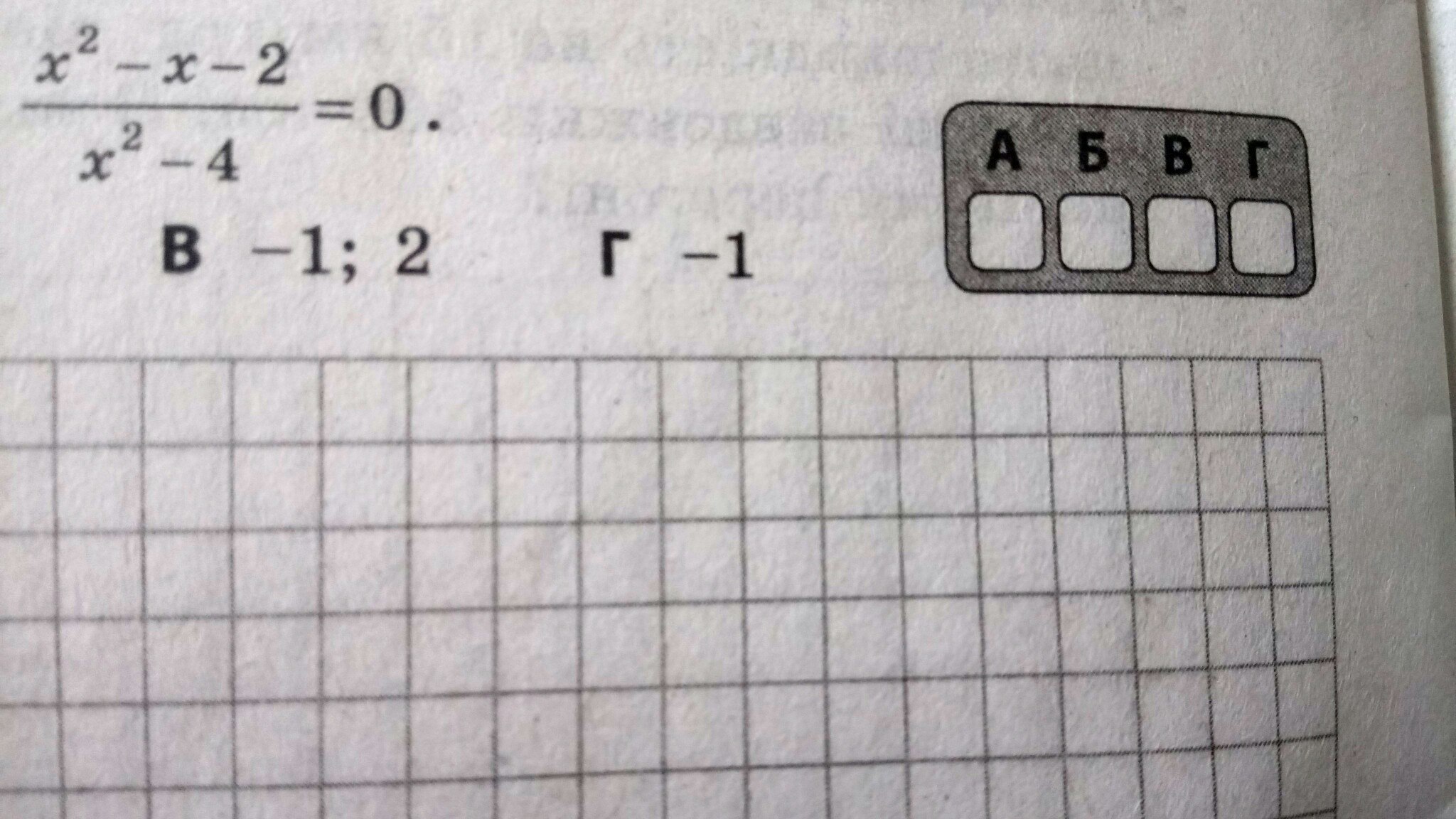 (x²-x-2)/(x²-4)=0 ОДЗ: x²-4≠0 x²-2²≠0 (x+2)(x-2)≠0 x≠-2 x≠2