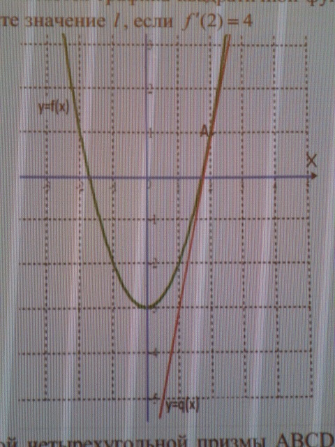Прямая y=kx+l касается графика квадратичной функции f(x)=x²-3 в точке A(2;1). Найдите значение l, если f'(2)=4.