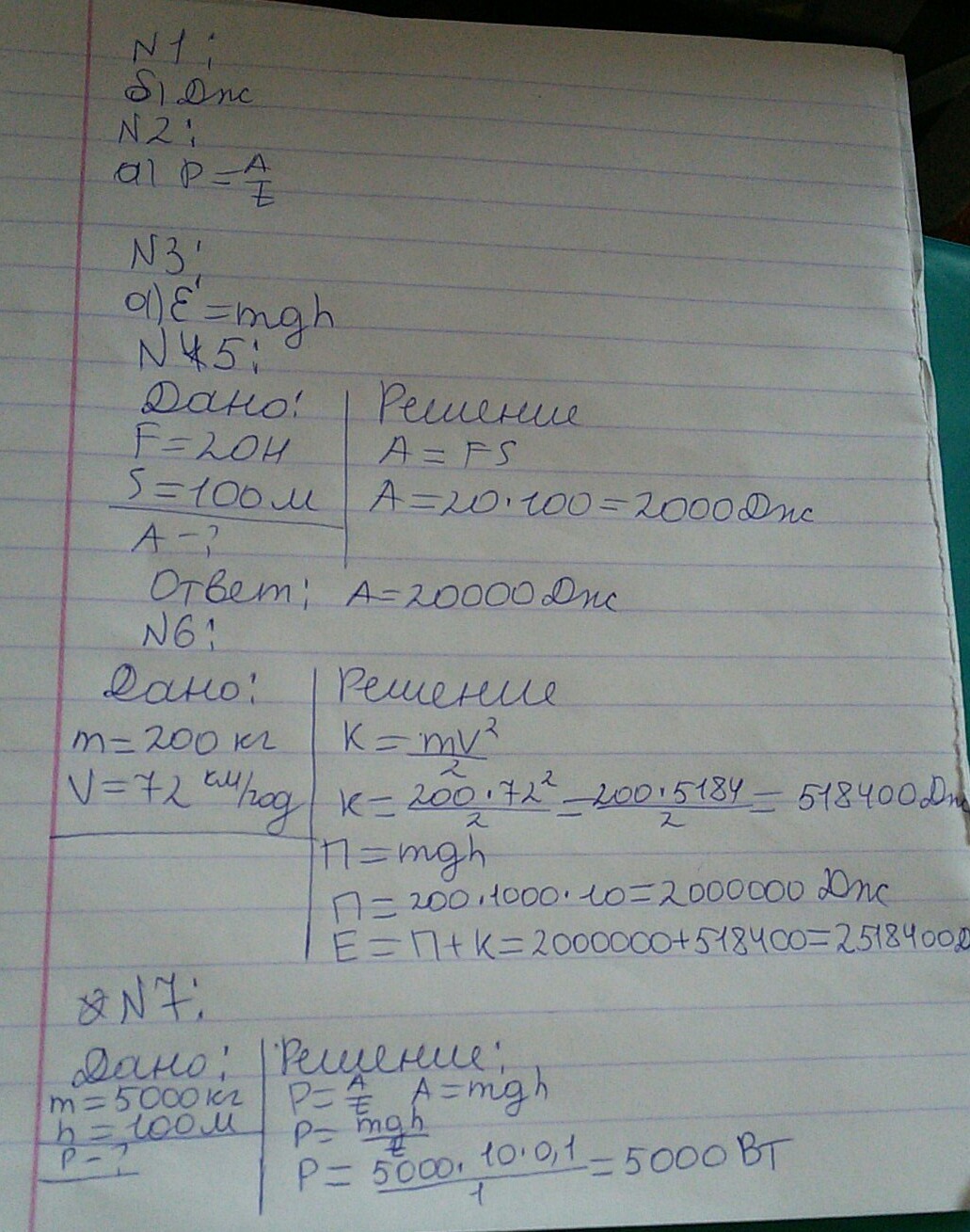 № 5. Обчисліть роботу, яку виконало тіло під дією сили 20 Н, проїхавши шлях 100 м ?