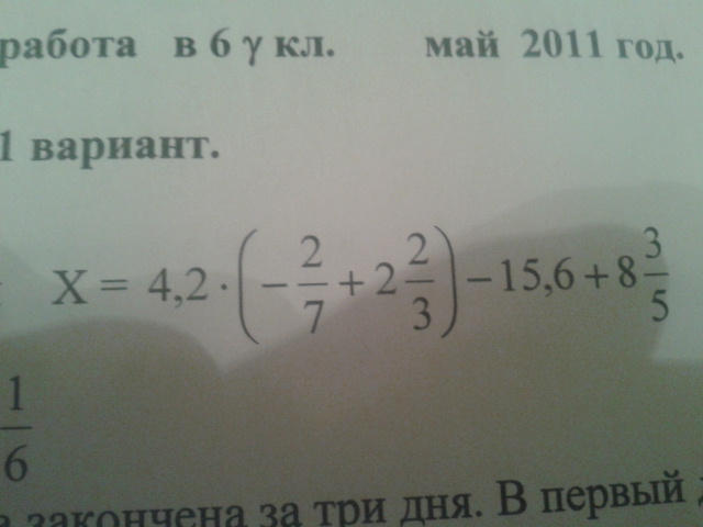 x = 4.2(-2/7 + 2 2/3) - 15.6 + 8 3/5
